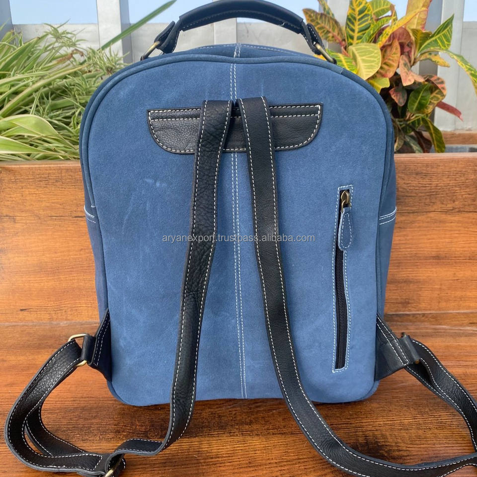 Christmas Sale 2024 Blue Suede Leather Boot Stitch Backpack Western Carved Leather Unisex Concealed Carry Laptop Backpacks