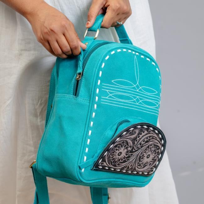 Christmas Sale 2024 Blue Suede Leather Boot Stitch Backpack Western Carved Leather Unisex Concealed Carry Laptop Backpacks