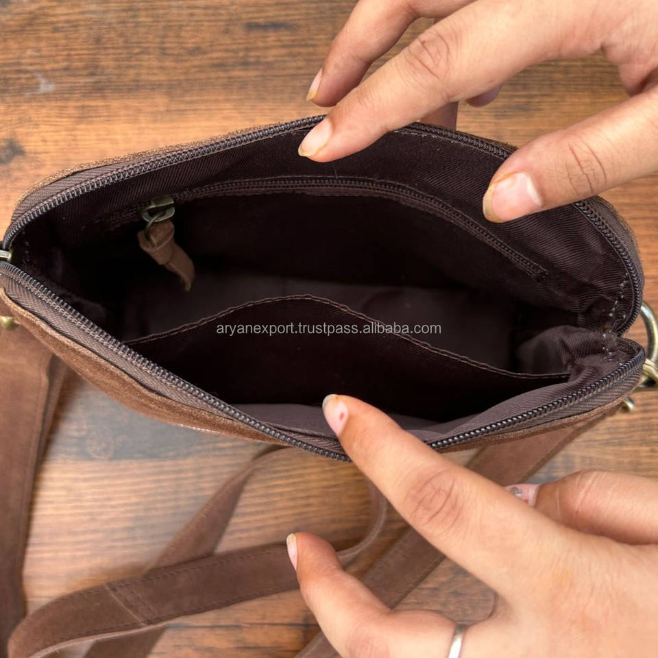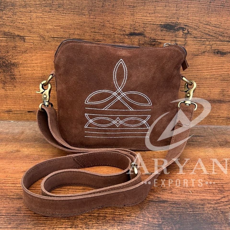 Product Name:Genuine Suede Leather Boot Stitch Crossbody Purse