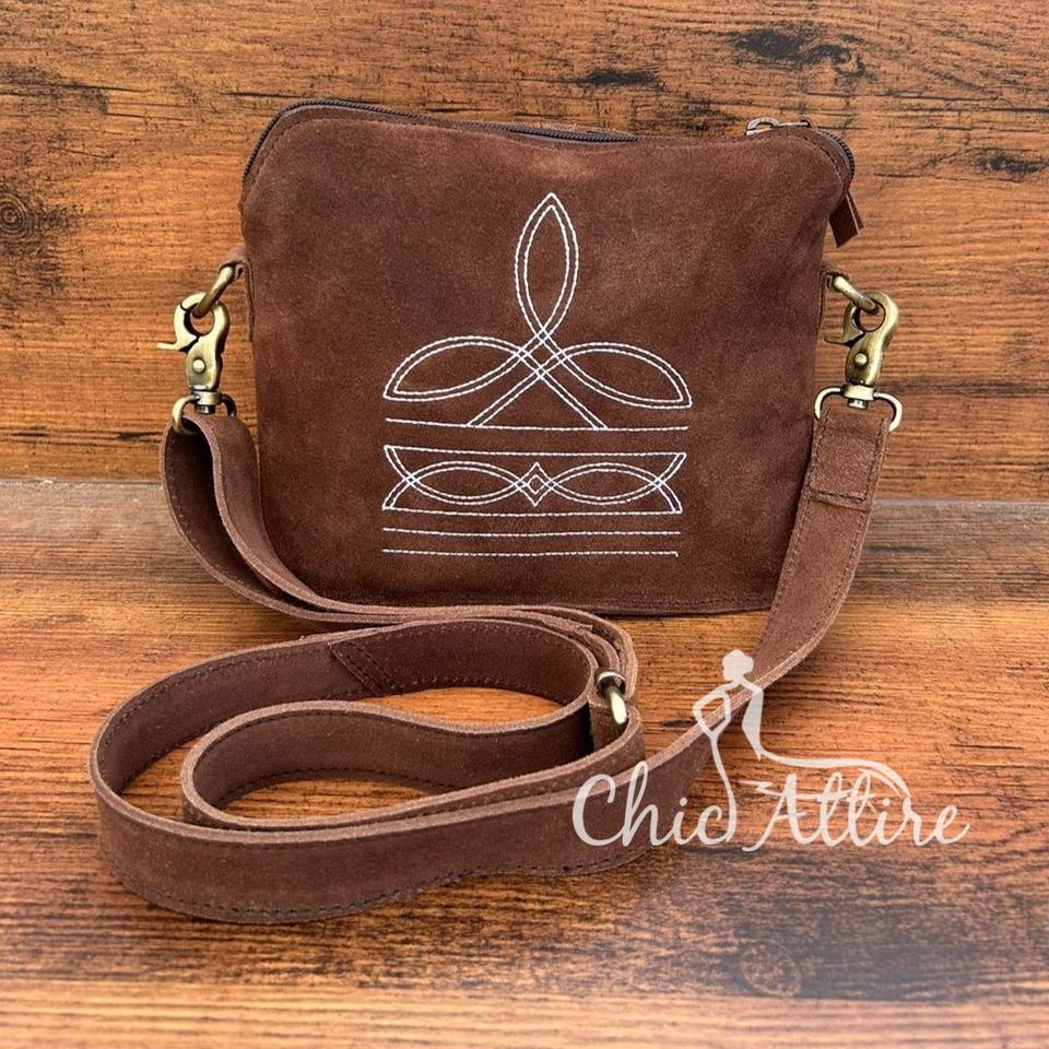 Product name:Genuine Suede Leather Boot Stitch Crossbody Purse