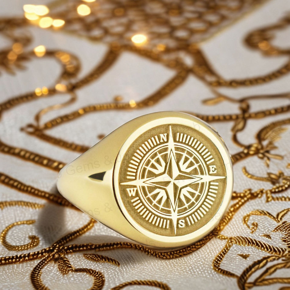 Christmas Sale Solid 925 Sterling Silver Retro Compass Engraving Signet Ring Women Men Fine Handmade Unique Wedding Party Gifts
