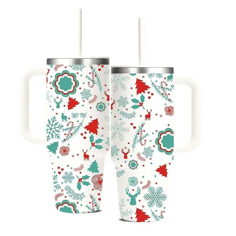 Christmas Santa Tumbler With Lid And Straw New Year Winter Holiday Gifts 40oz Double Wall Vacuum Insulated Mug