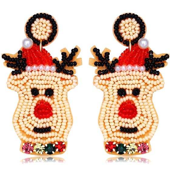 Customizable Festive Designs Handcrafted Christmas Seed Beadwork Embroidery Drop Earrings Fashionable Women's Holiday Jewelry