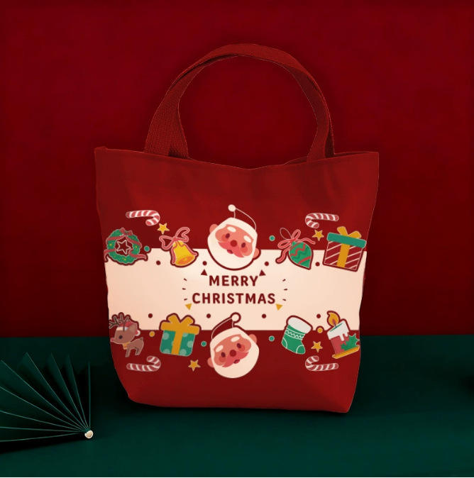Christmas Shopping Tote Bag 12/14/16/18 Oz Canvas Bag Eco Friendly Black Friday Holiday Season Gift