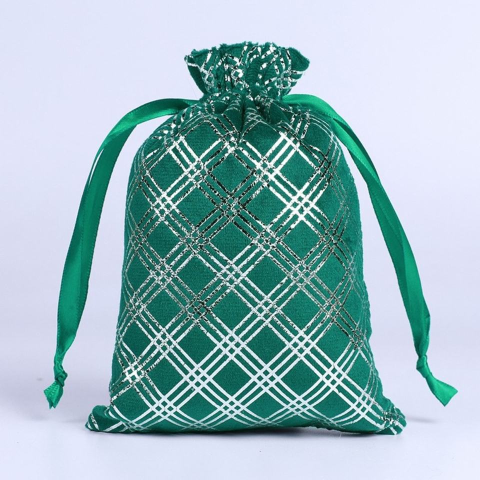 Christmas Sock Pattern Drawstring Gift Bags Xmas Wrapping Set Polyester Festive Pocket Bags