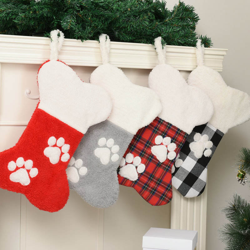 Christmas Stocking Red Green Socks Gift Bags Pet Pocket Hanging Tree Ornaments Christmas Decorations