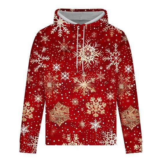 Christmas Sweatshirts for Men 2025 Trendy Snowflake Printed Long Sleeve Hoodies Xmas Big and Talls