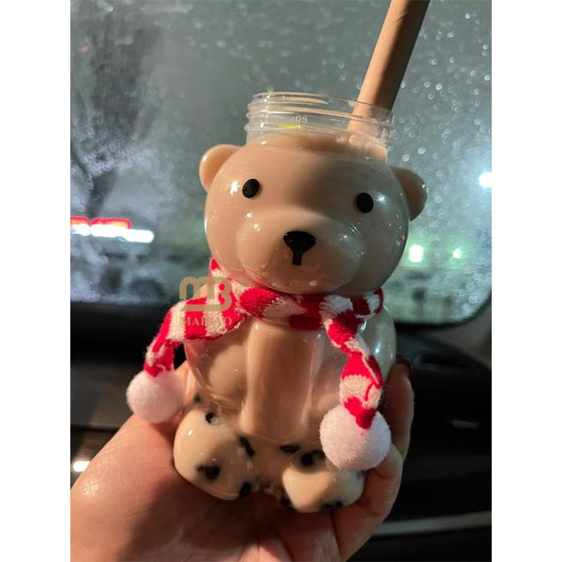 Christmas Theme Gingerman Bear Shape Recyclable PET Plastic Beverages Bottle Can with Lid for Cold Drink Bubble Boba Milk Tea