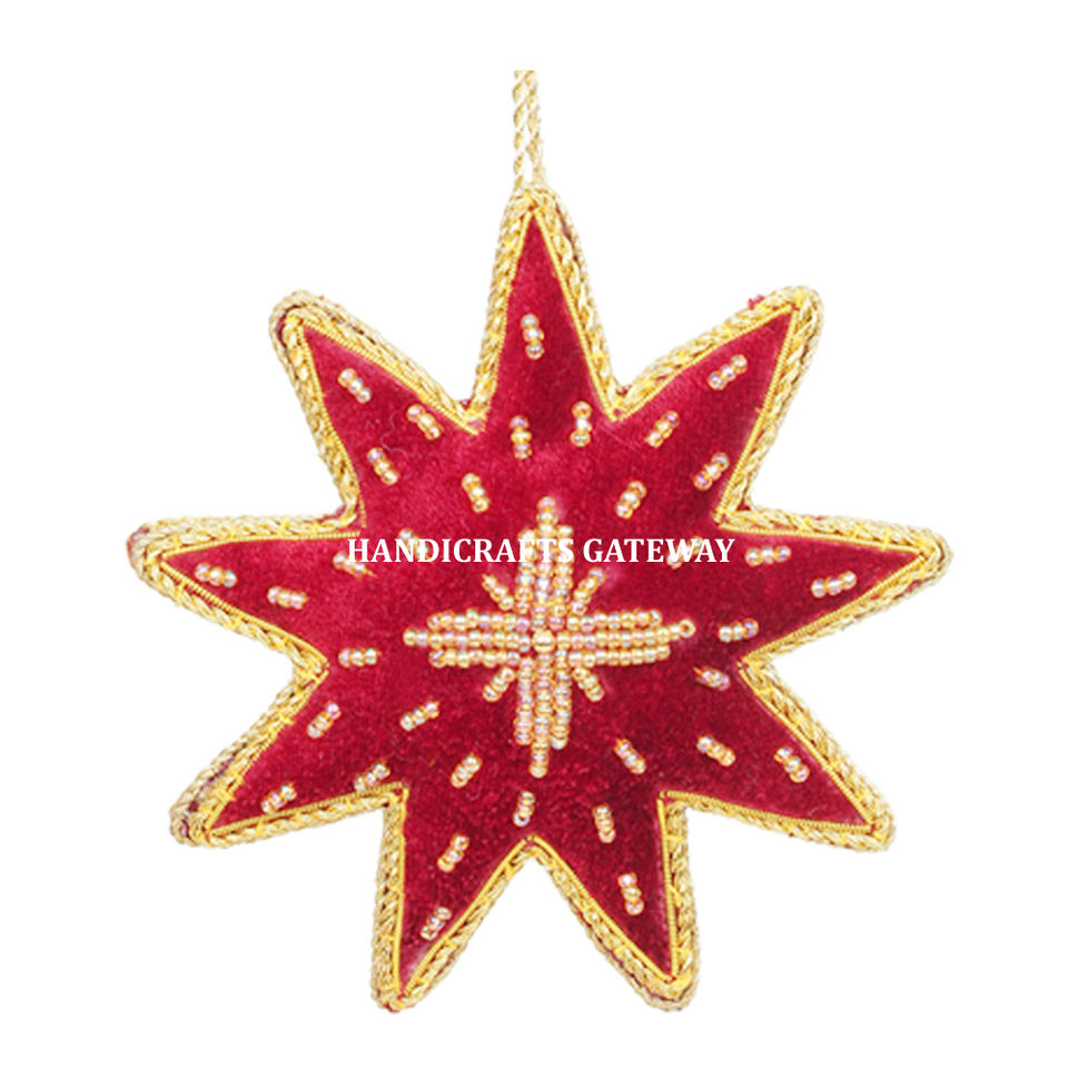 Christmas Tree and Home Decoration Star Shape Design Ornament of Zari Embroidery With Bead Work Hanging Ornaments