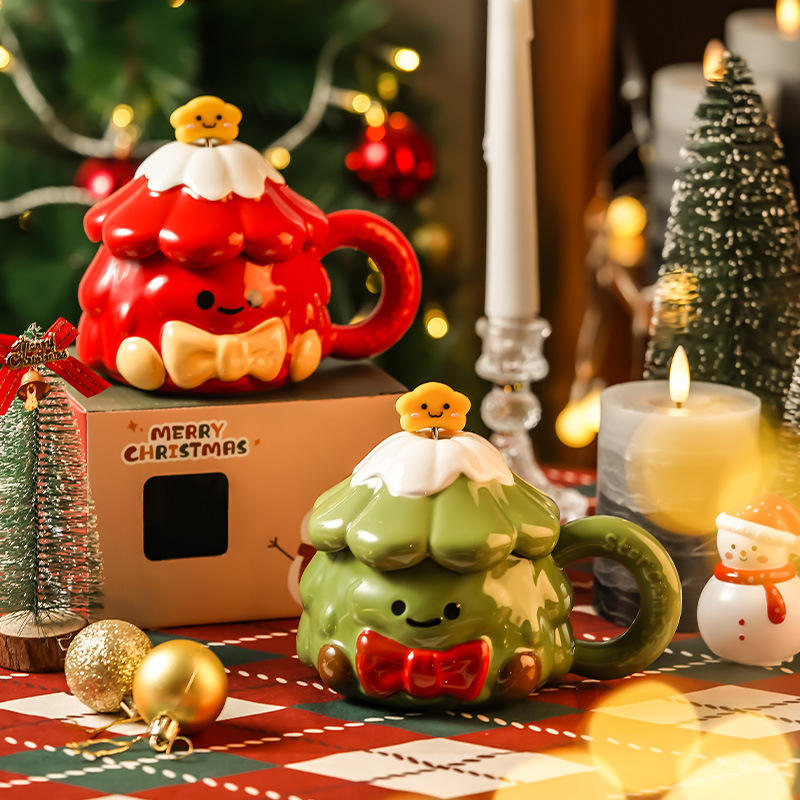 Christmas Tree Ceramic Mug with Lid Spoon and Creative Santa Claus Cup
