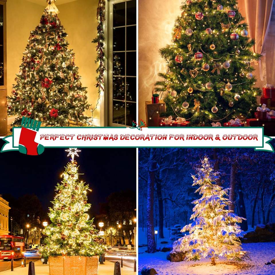 Christmas Tree Lights with Ring 16 Strings Christmas Curtain Fairy Tree Light 8 Mode for Xmas Fir Pine Party Decoration
