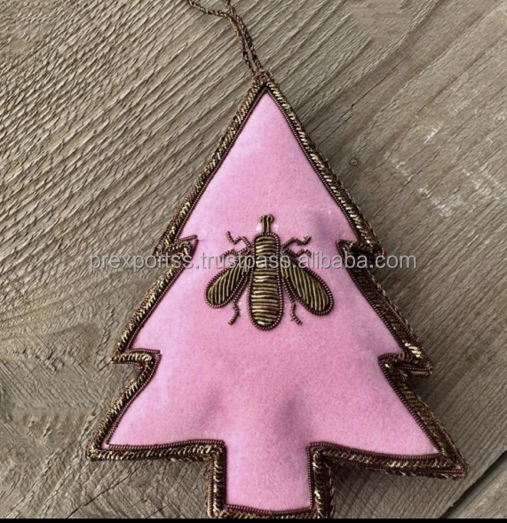 Christmas Tree Ornament Handmade Brass Embroidered Beaded Bee Design Hanging Decoration Festive Holiday Seasonal Home Christian