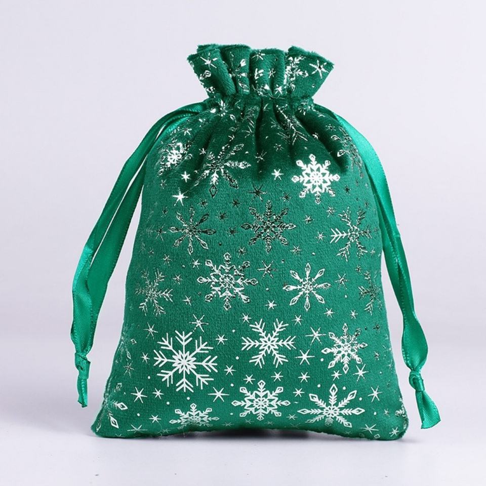 Christmas Tree Pattern Drawstring Gift Bags Holiday Party Packaging Nylon Festive Pouches Set