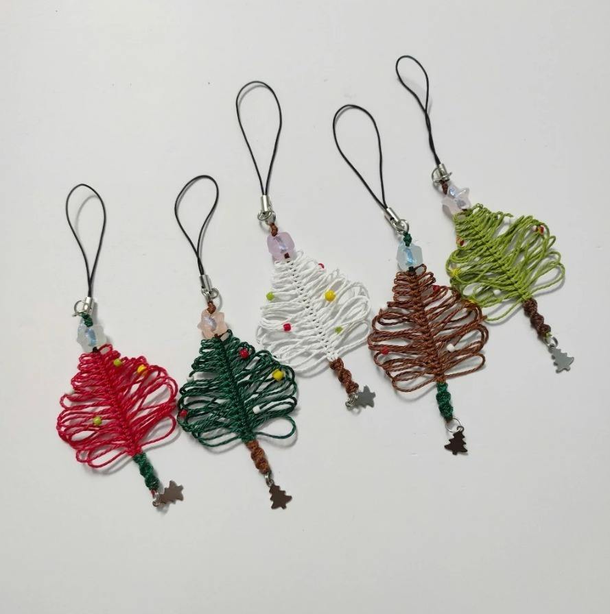 Christmas Tree Rope Keychain Handmade Macrame Ornament Cute Holiday Bag Charm Winter Gift Accessory