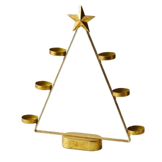 Christmas Tree Shape Antique Metal Star Tealight Holder Arms Best Selling Home Decoration Use Candle Holder