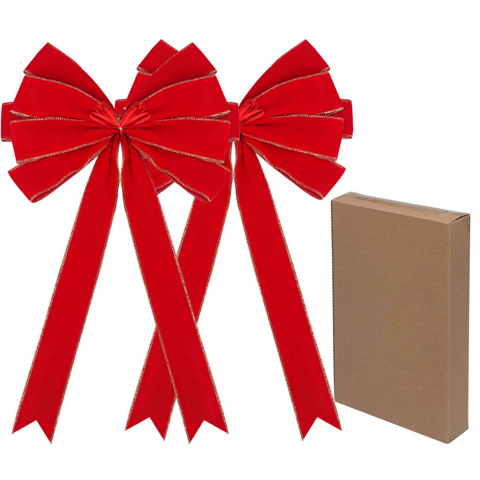 Christmas Tree Topper Flocked Big Red Velvet Ribbon Bows Gold Edge Wholesale Factory Hanging Top Decoration for Festive Season