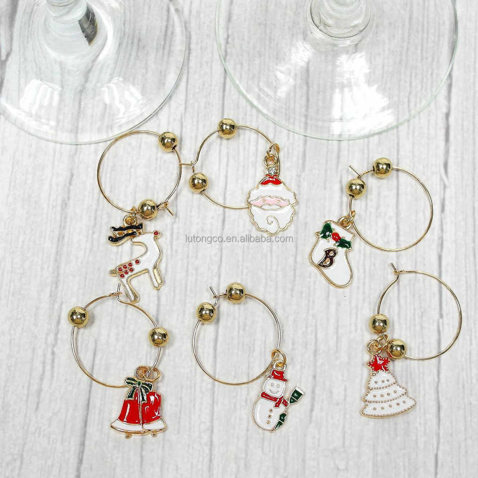 Christmas Wine Glass Charms Holiday Wine Drink Markers Zinc Alloy Seasonal Bar Accessories for Party Celebrations