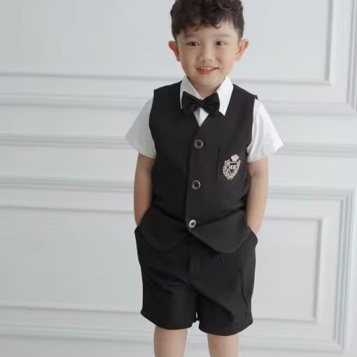 Christmas Winter Children's Clothing Custom Baby Boy Suits Set 3 Pieces Vest and Short Bow Tie Machine Embroidery-Richard Black