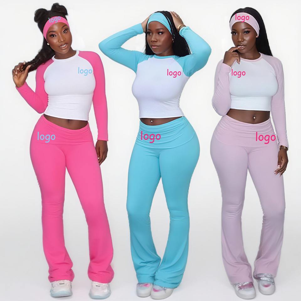 Christmas Women Set Baby Tee Raglan Sleeves Shirts Flare Pant Y2k Cotton Skinny High Elasticity 2 Pieces Loungewear Set
