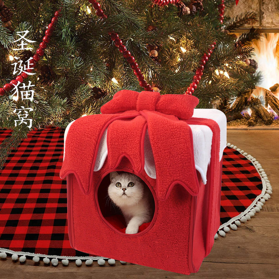 Christmas XL and Small Size Fully Enclosed Warm Autumn Winter Pet Cat and Dog Bed Manufacturer Wholesale