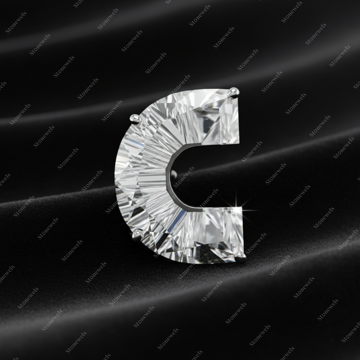 Product Name:Solid Lab Grown Initial Alphabet Letter C Shape Diamond Earring