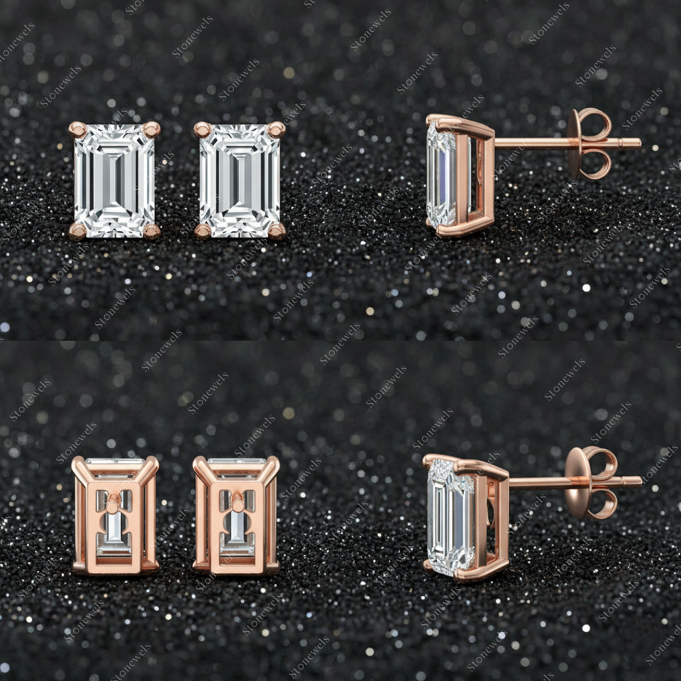 Solid Lab Grown Baguette Shape Diamond Earring