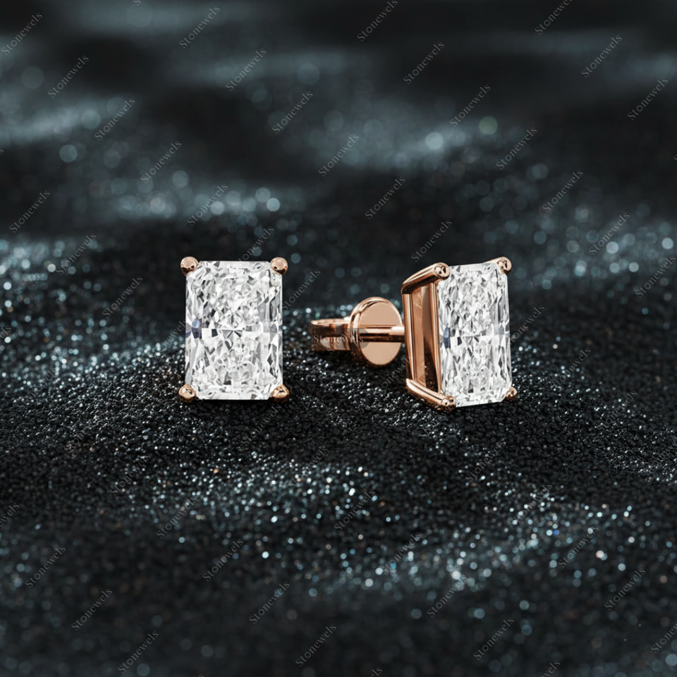 Solid Lab Grown Radiant Shape Diamond Earring