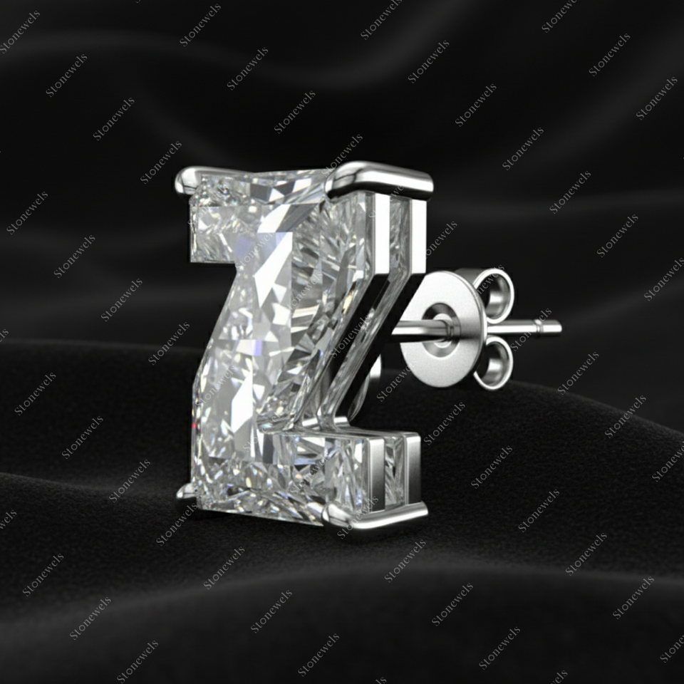 Product Name:Solid Lab Grown Initial Alphabet Letter Z Shape Diamond Earring