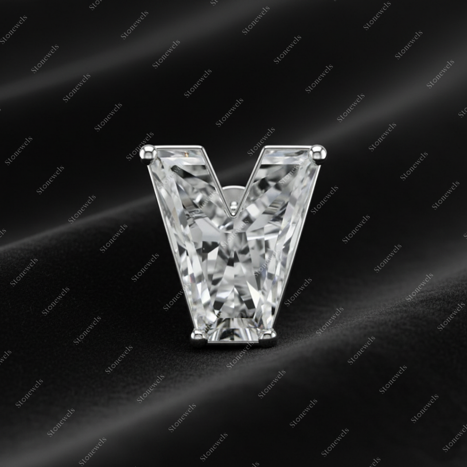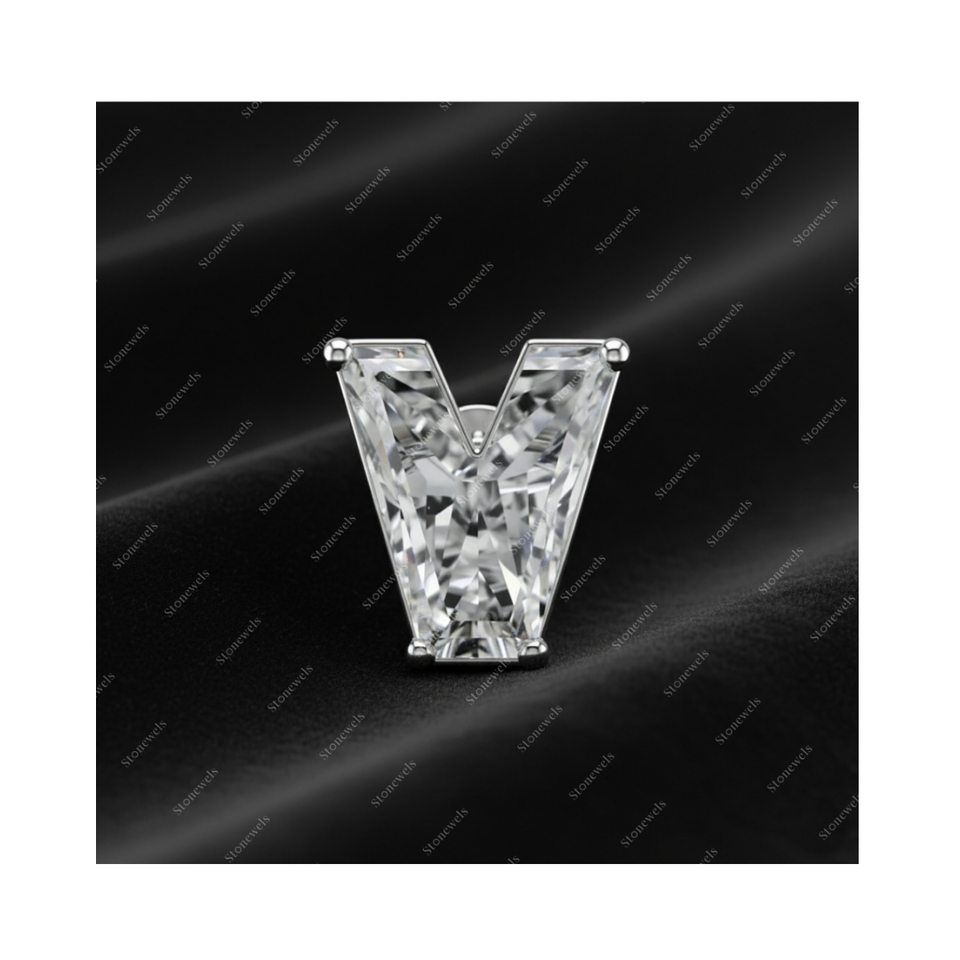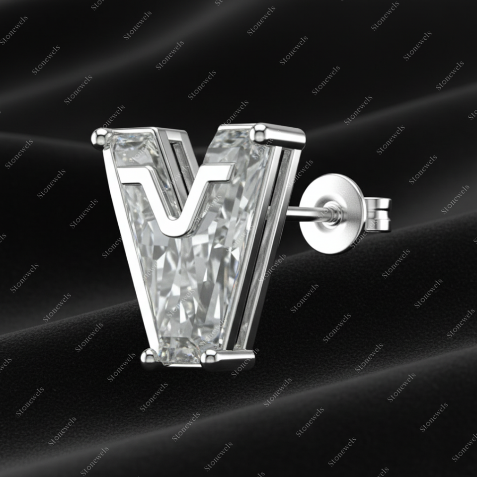 Solid Lab Grown Initial Alphabet Letter V Shape Diamond Earring