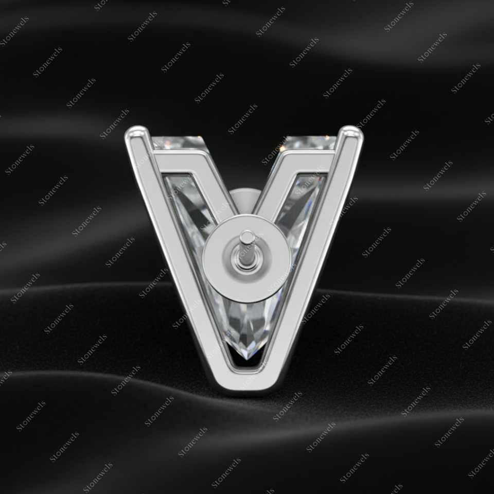 Product Name:Solid Lab Grown Initial Alphabet Letter V Shape Diamond Earring