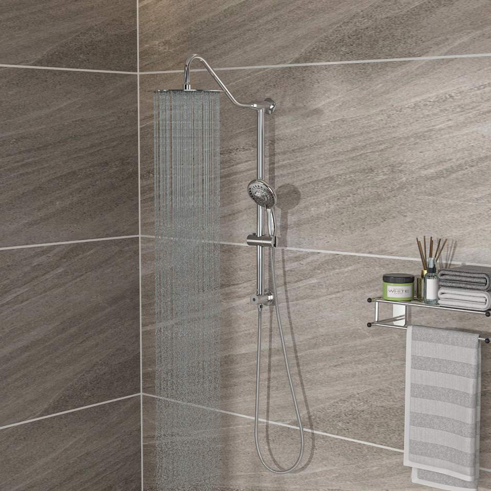 Chrome 10-inch Overhead and Hand Shower Set with Dual Round Shower Heads As Pic