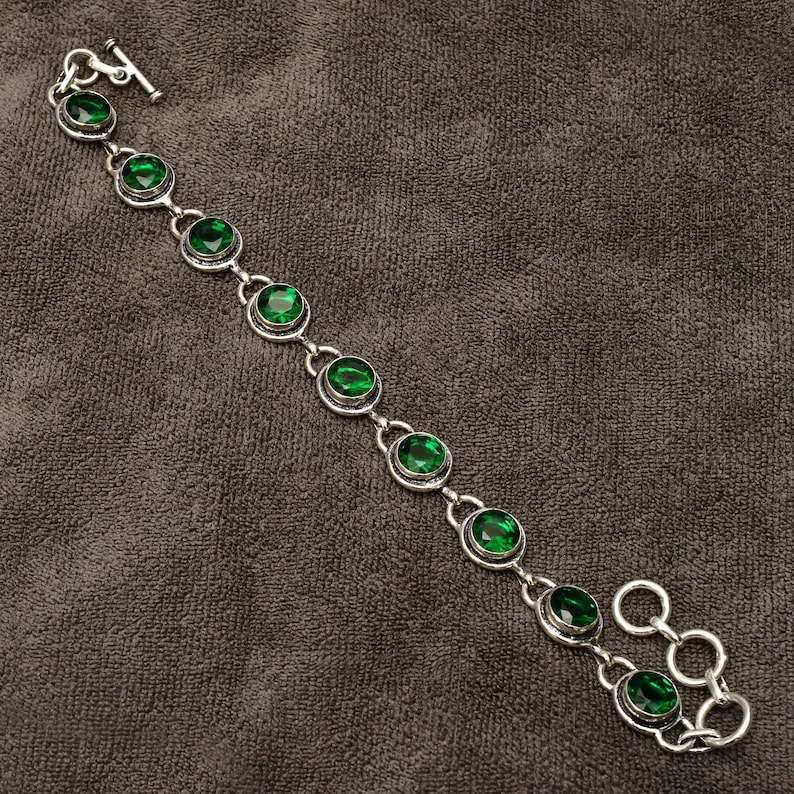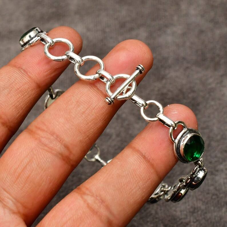 Chrome Diopside Gemstone Bracelet Handmade 925 Sterling Silver Natural Green Stone Womens 7 Inch Bracelet Gift