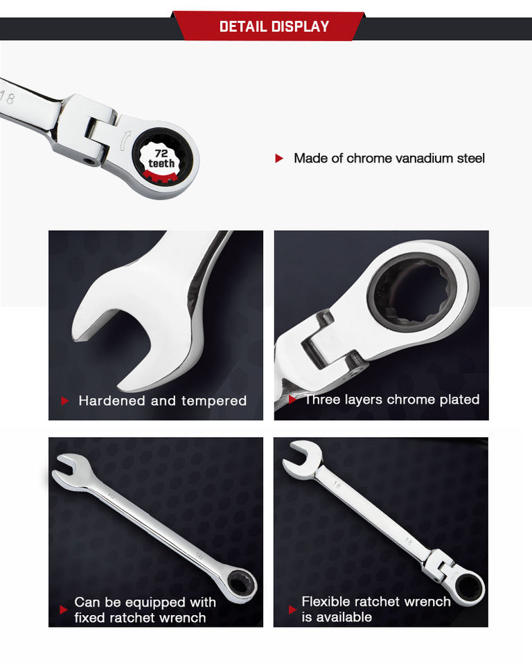 Chrome Vanadium Steel Ratchet Spanner with Flexible Head Wrench for Tight Spaces