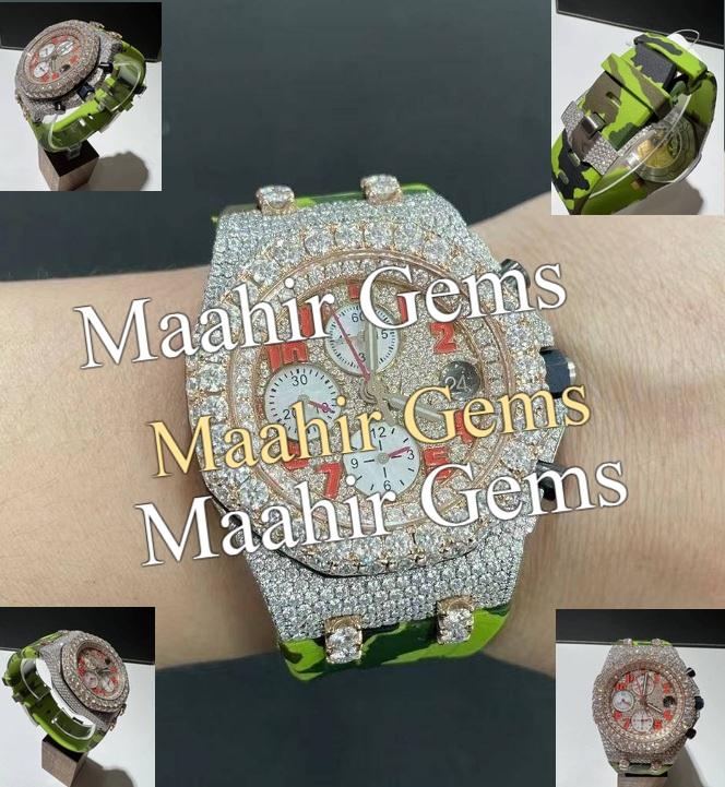 Chronograph Moissanite Watch 44mm Mechanical Luxury Hip Hop Stainless Steel Glass 10 Bar Water Resistance Black Strap Bracelet