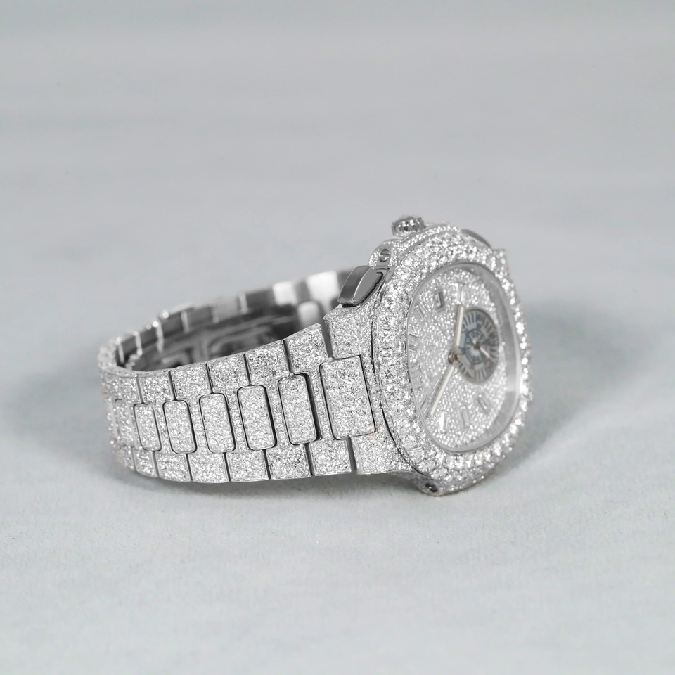 Men's Fashion Stainless Steel Chronograph Wrist Watch with VVS Clarity Diamond Quartz Movement Upgraded Band Position