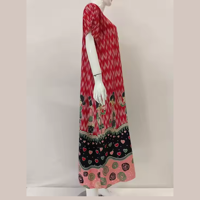 Chrysanta Jumbo Mom's Dress with front button Floral Pattern Short Sleeve Sleepwear
