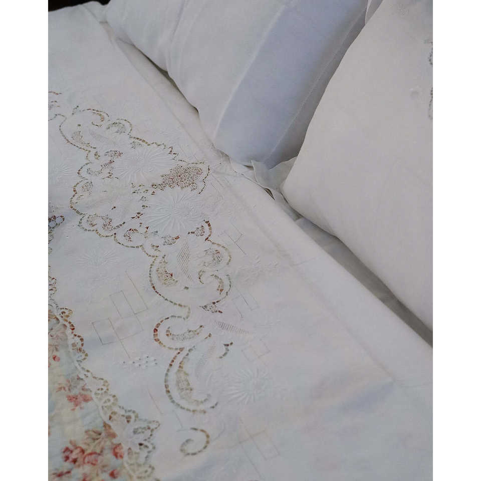 Reana Chrysanthemum Embroidered Double Bed Linen Sheet Set with Fitted & Flat Sheets