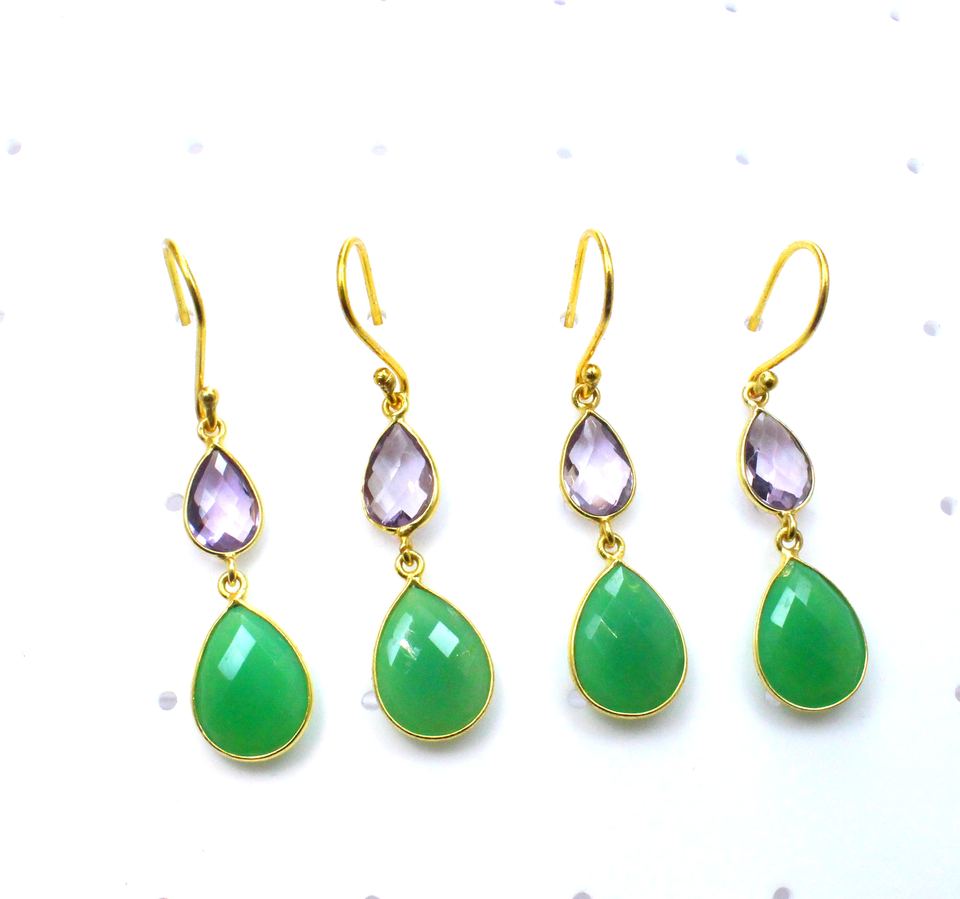 Chrysoprase Chalcedony Amethyst Faceted Brass Jewelry Dangle Earrings Fashionable Multi- Stone Hoop Earrings Quartz Main Stone