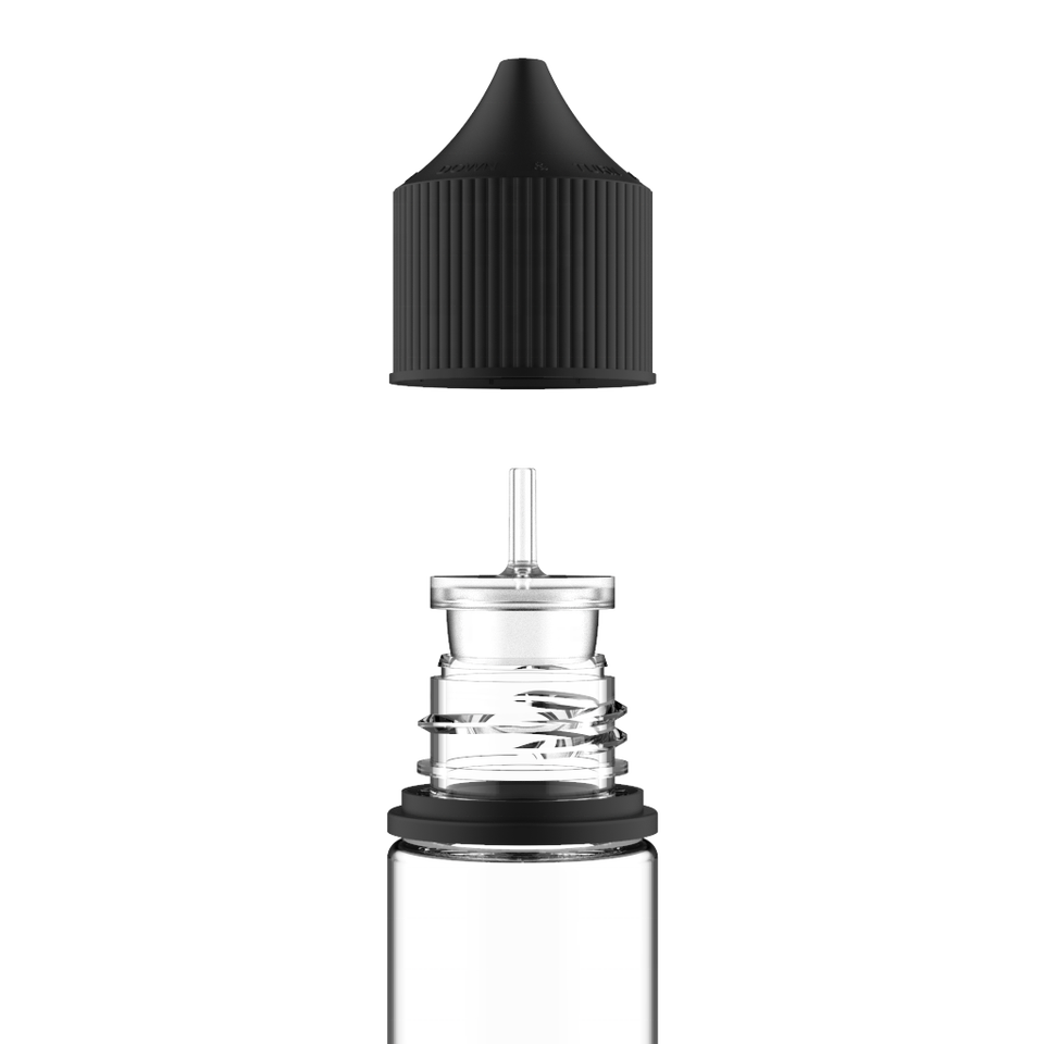 Chubby Gorilla 60ML PET Unicorn Bottle CRC & Tamper Evident Break-Off Bands (Clear Bottle/Opaque Black Closure)
