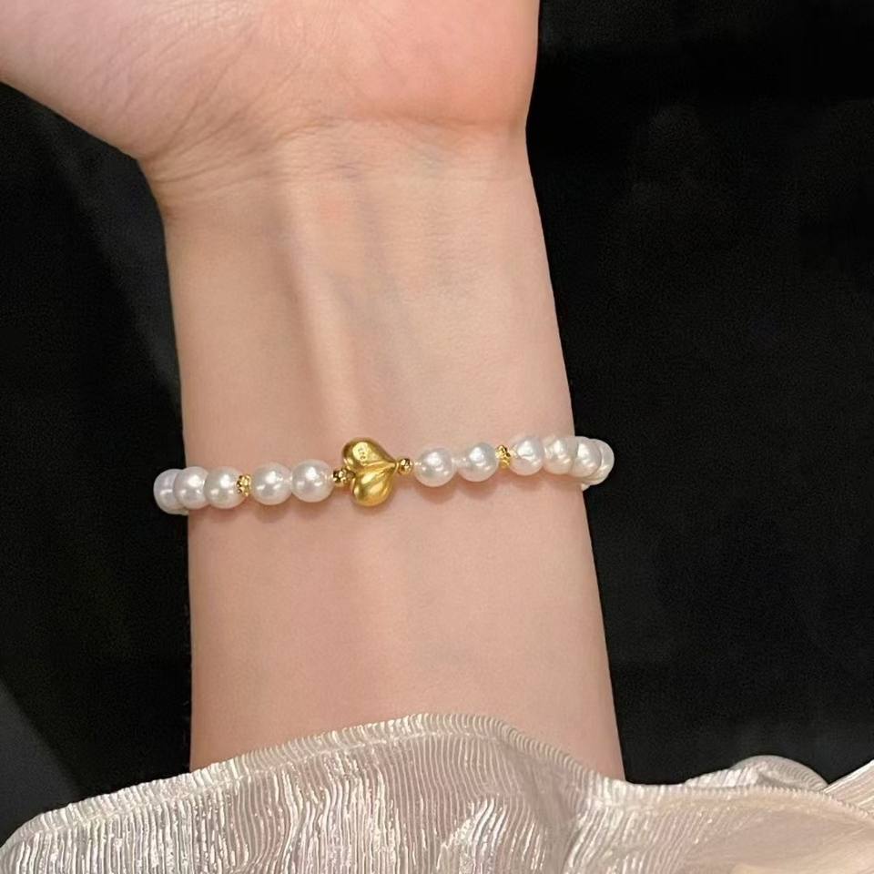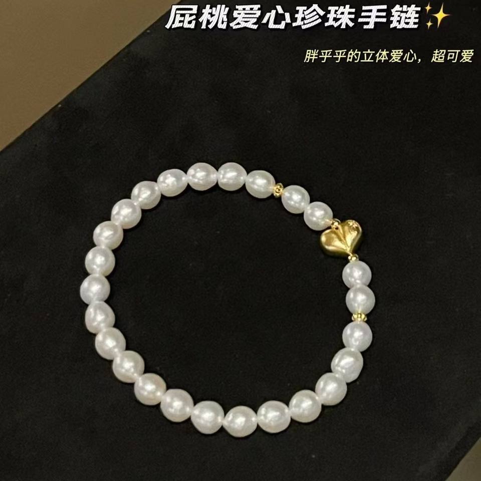 Chubby Heart-Shape Peach Pearl Bracelet Natural Freshwater Luxury Fashionable Light Charm Jewelry