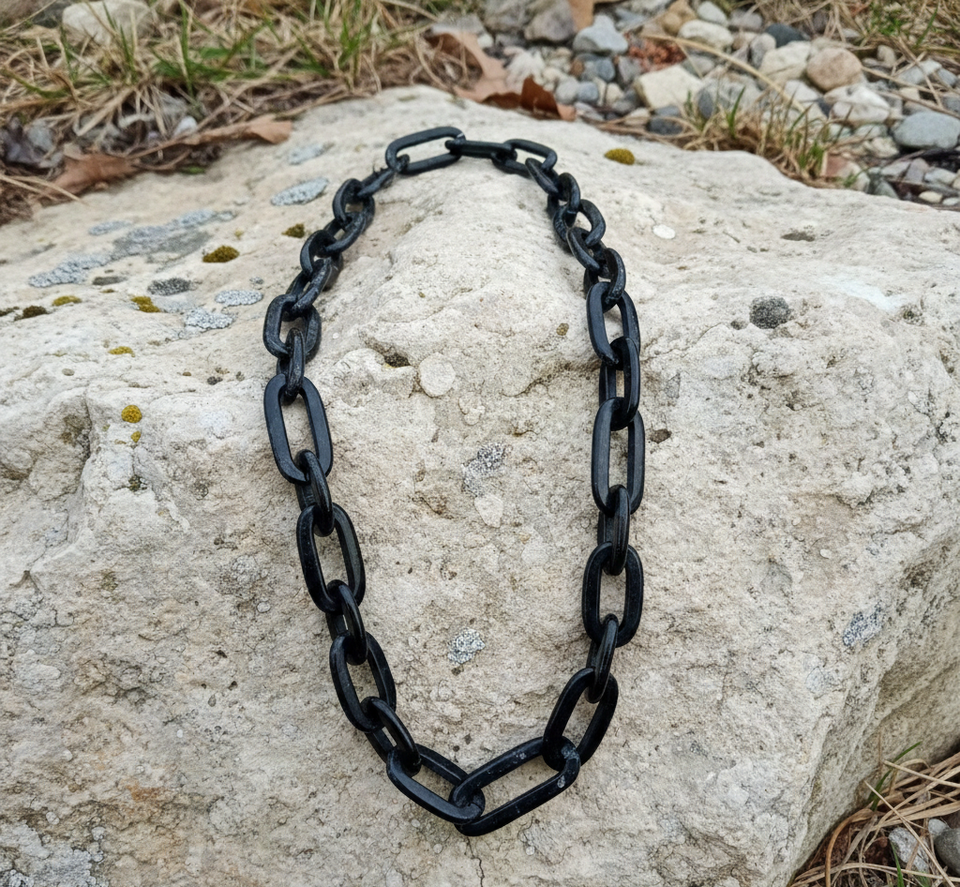 Chunky Black Resin Chain Link Necklace - Oversized Acrylic Large Link Statement Boho Gothic Jewelry Matte Marbled Finish