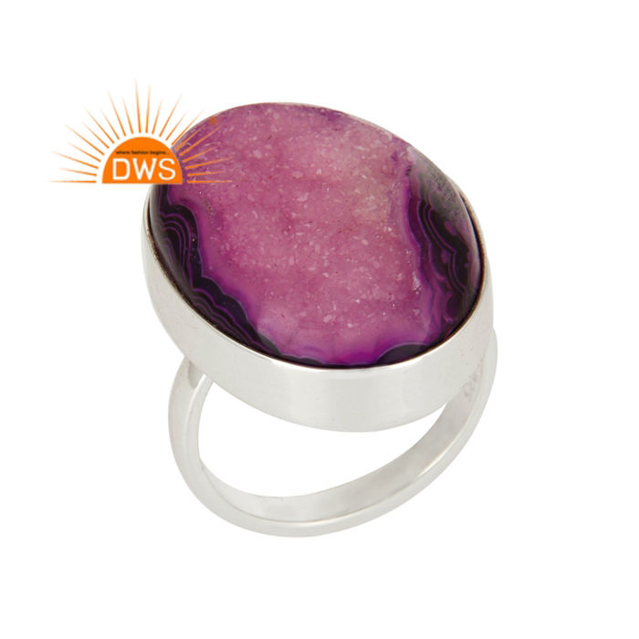 Chunky Oval Purple Druzy Gemstone Ring Solid 925 Sterling Fine Silver Girls Ring Jewelry Manufacturer Classic Collection