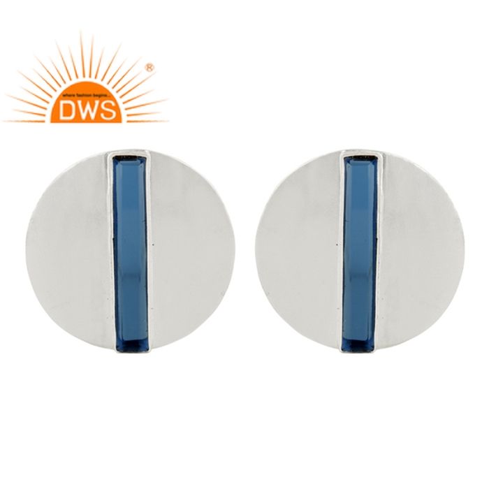 Chunky Round Blue Corundum Gemstone Women's Stud Earrings Jewelry Supplier for Party Wholesale Fine Silver Jewelry