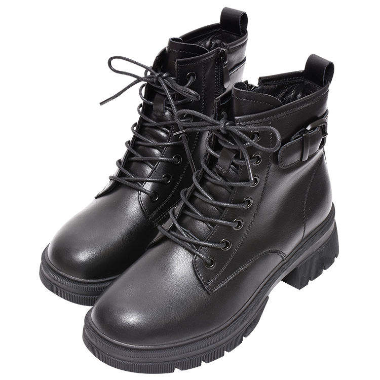 Black Leather Lace-Up Boots with Padded Heel Lining Arch Support PU Outsole for All Seasons