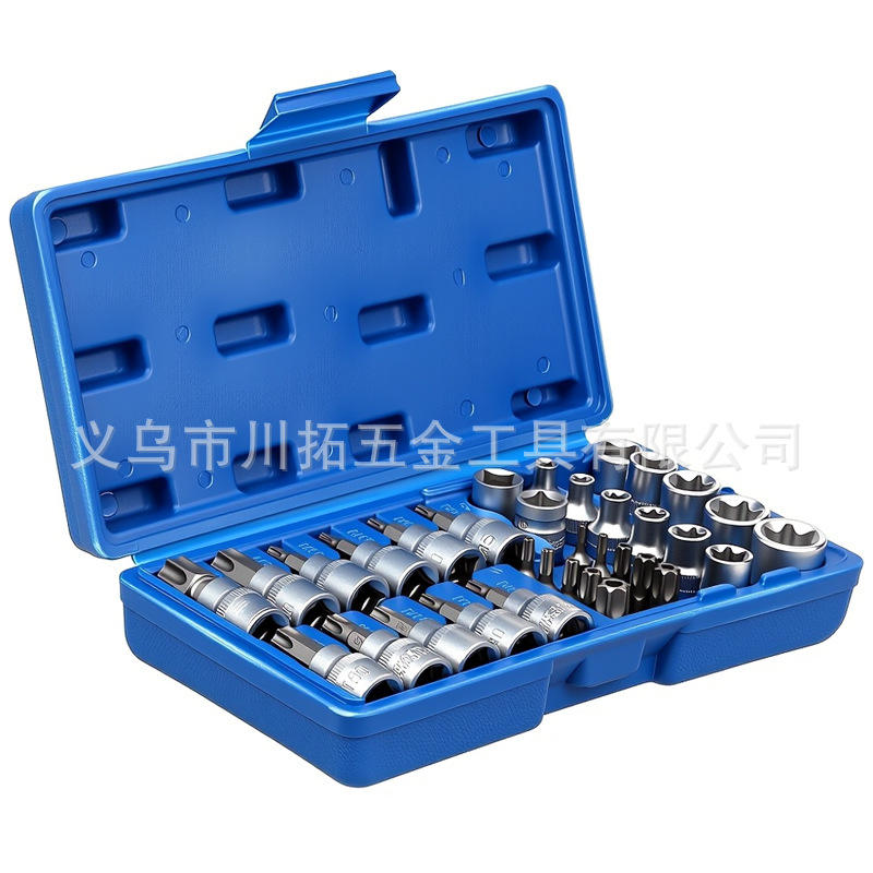 Chuotuo 34-Piece Tool Set Chrome Vanadium Steel Socket Wrenches For Car Mechanical Home Repair Case