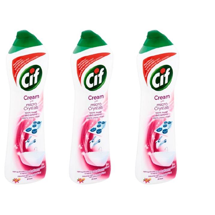 Cif Cream Eco-Friendly Liquid Multi-Purpose Kitchen Cleaner Pink Flower-16.9 Fl Oz / 500 mL X 3 Pack