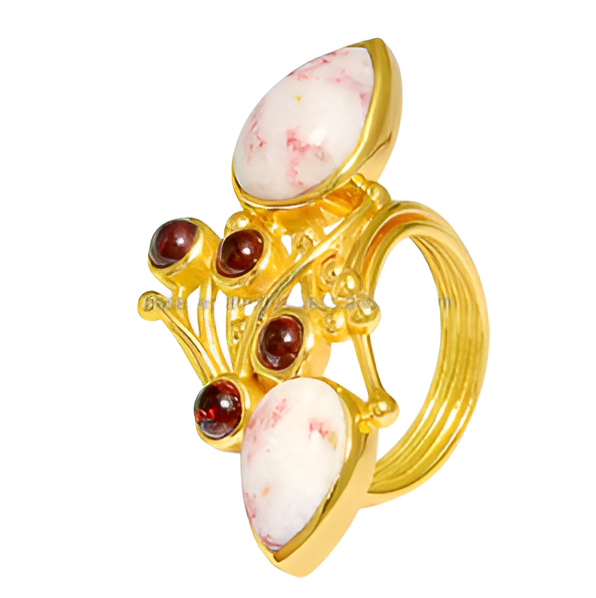 Cinnabar Garnet Gemstone925 Sterling Silver Vintage Ring Gold Plated Classic Fashionable Ring for Wedding, Anniversary for Women
