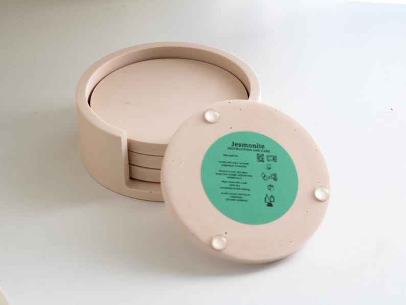 Circle Stone Coaster Set With Holder Set Of 4 Minimalist Neutral Handmade Homeware Drinkware Gift