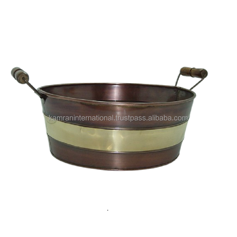 Circular Brass Basin Planter Hand-Painted Wildflower Garland Side Ring Handles Eco-Friendly Outdoor Indoor Use Drainage Hole
