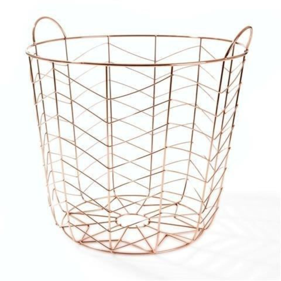 Circular Copper Wire Basket Modern Geometric Open Wire Design Organizer With Handles Metal Rose Gold Storage Bin Best Price